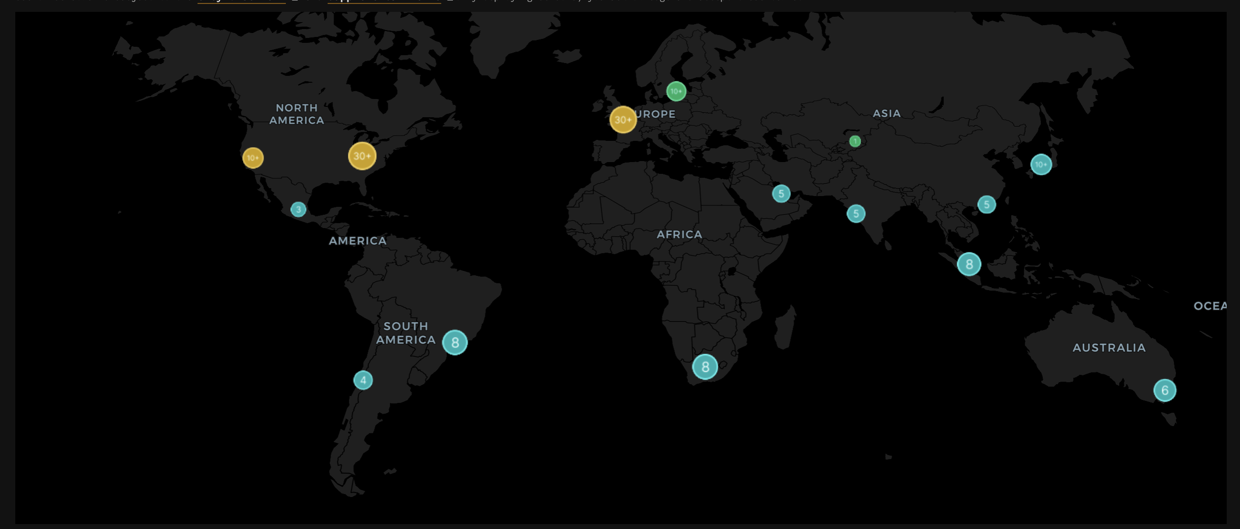 The world map at the top of the Sensors page shows your sensors clustered by region. Color indicates sensor health status: